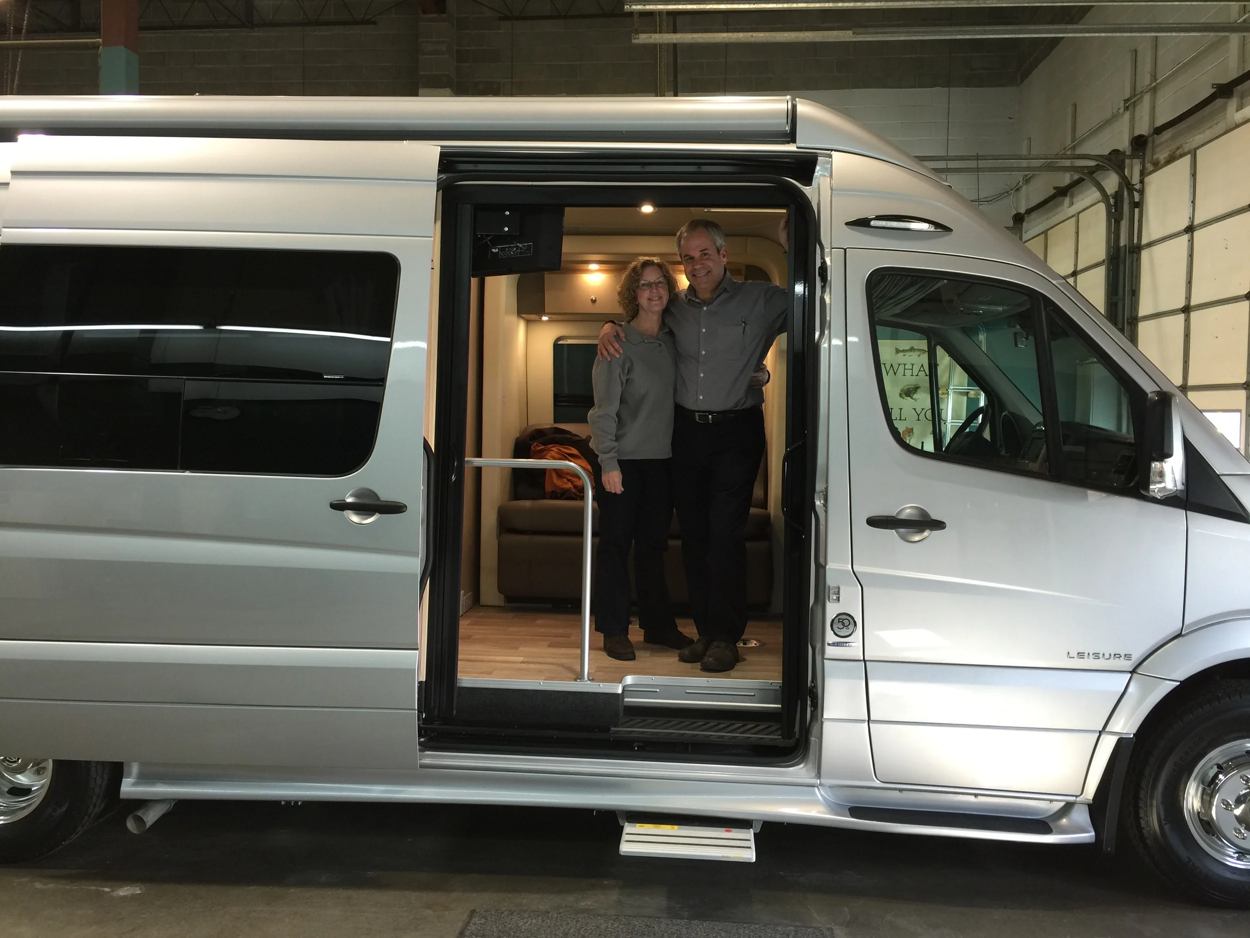 Our first time inside the Free Spirit SS, still inside the garage at Van City RV