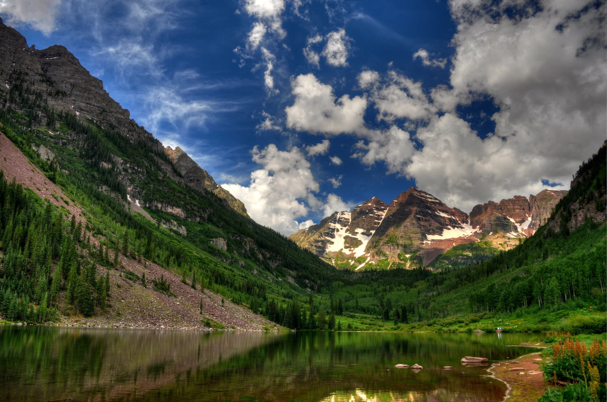 HDR processing combines all the rich detail and color that were in various portions of the original three photos, resulting in the picture below. After the software does its magic, I typically do nothing more to the final HDR image other than adjust the black level slightly to improve overall color saturation, and this image is the best representation of what my eyes saw that day as I looked toward the Maroon Bells.